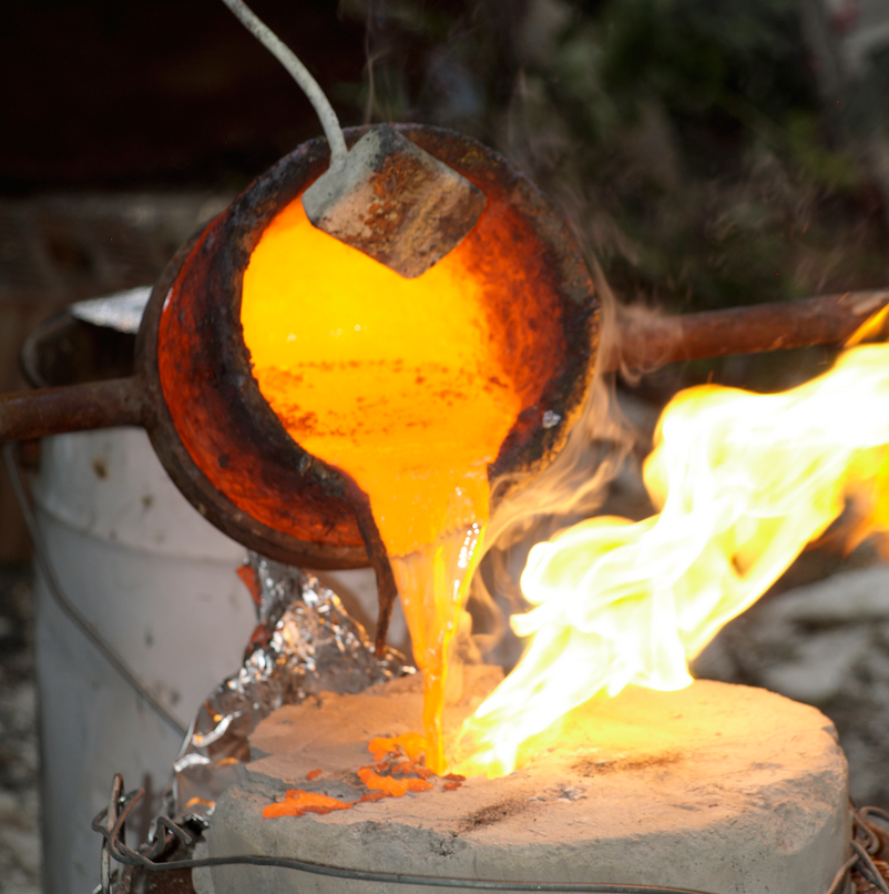 Dieser Kurs zeichnet sich aus durch gestalterische Tätigkeiten, die inmitten der Natur zu einem unvergesslichen und alchemistischen Erlebnis werden. Im Atelier werden Gussformen vorbereitet und verschiedene Metalle zusammengemischt, die anschliessend im Freien im modernen Ofen geschmolzen und in die vorbereiteten Formen gegossen werden. Techniken wie das Wachsausschmelzverfahren und der Sandguss werden vermittelt und umgesetzt. In diesem experimentellen Kurs wird deutlich, dass der Guss nicht nur die handwerkliche Umsetzung eines Kunstwerkes sein kann, sondern jede gegossene Plastik ihren eigenen Ausdruck findet. Experimentieren ist erwünscht!